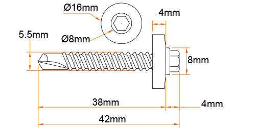 5.5 x 38mm Coloured Roofing Tek Bolts for Heavy-Duty, Weatherproof Installations