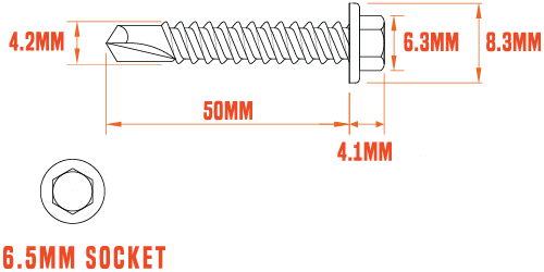 4.2 x 50mm Hex Head Coloured Self Drilling Screws for Reliable Fixing in Metal
