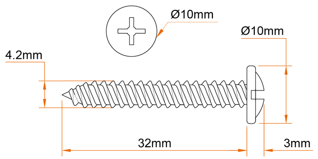 - Self-Tapping Thread: 60° thread cuts efficiently into soft materials without the need for pilot holes.
